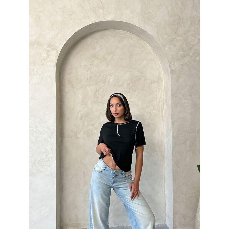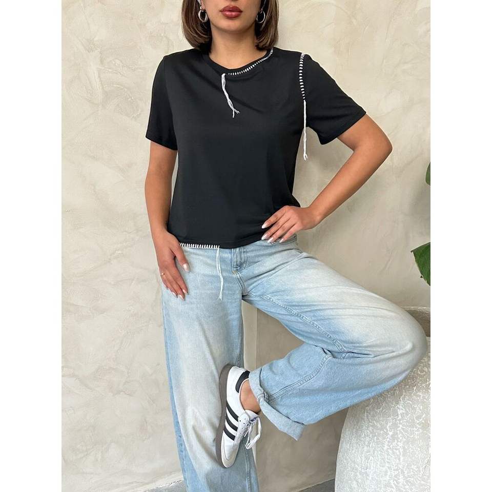 Camisetas de Verano Topshow, Transpirables, de Algodón, Estilo Y2K, Sexy, Negras, con Costuras de Pastor, Tallas XS-XL, Ajustadas, con Diseño de Diamantes