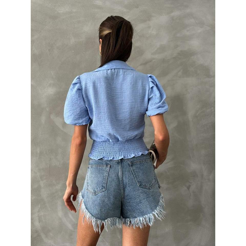 Blusas y camisas extragrandes para mujer Yandan Büzgülü Kadın Gömlek Siyah