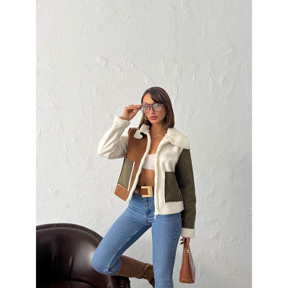 Abrigos de Invierno para Mujer Topshow, de Gamuza Laminada con Pelo de Conejo, Cristal Chinchilla