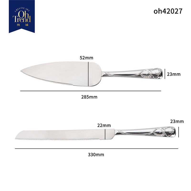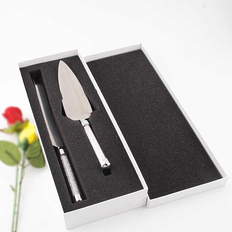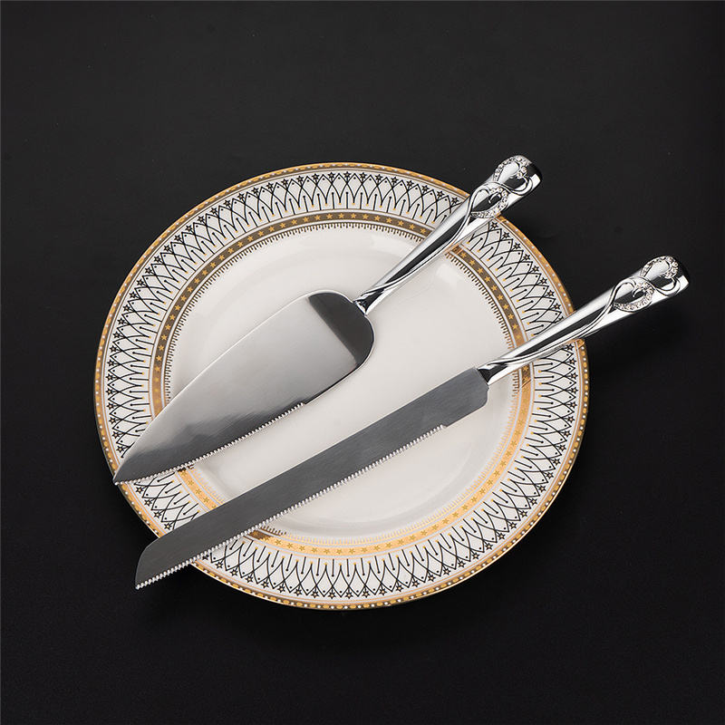 Topteam-Juego de cuchillos y servidores para cortar tartas, cortador de pasteles de acero inoxidable, de metal y cristal de diamante con mango de corazón