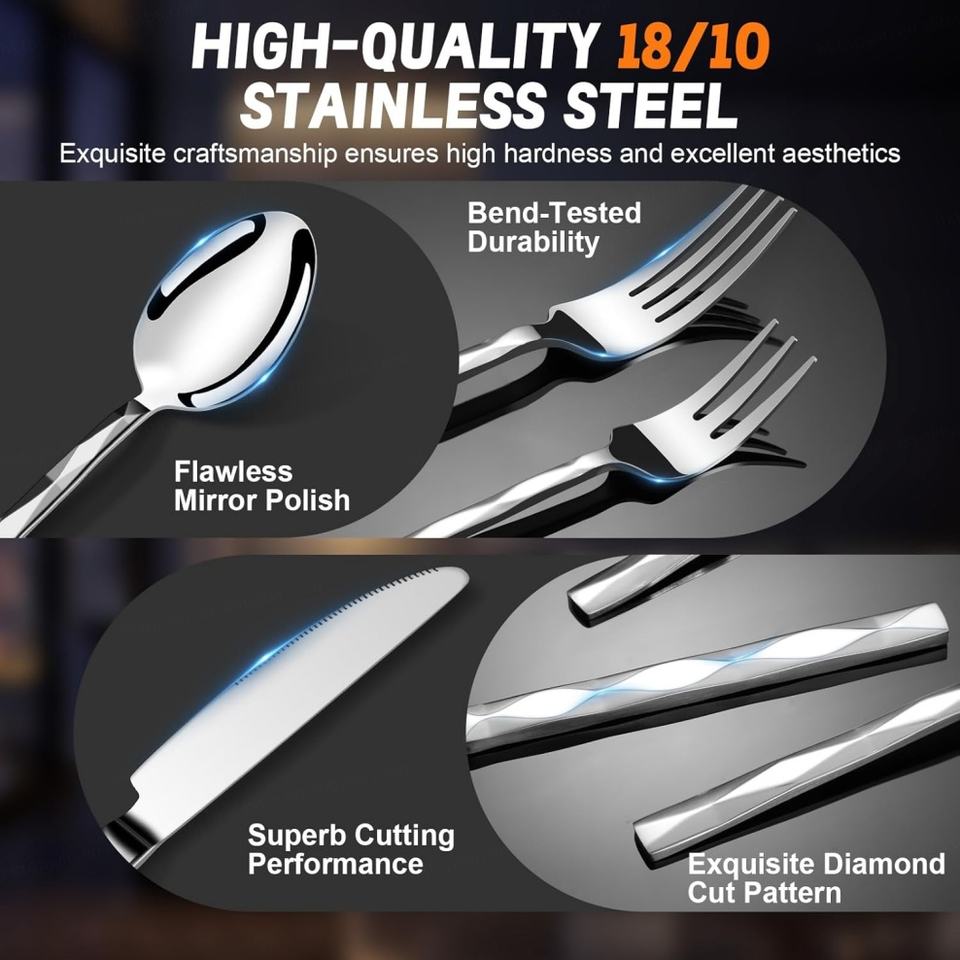 Juego de Cubiertos de Acero Inoxidable con Diseño de Lujo Topwin y Mango en Forma de Diamante