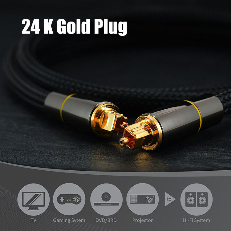 Cable óptico digital Toslink a Toslink con enchufe chapado en oro de 24K, compatible con OEM ODM