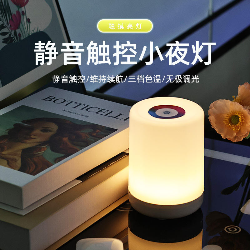 Touch Control Night Light Round Battery Powered Silent Three Color Timer Bedside Lamp