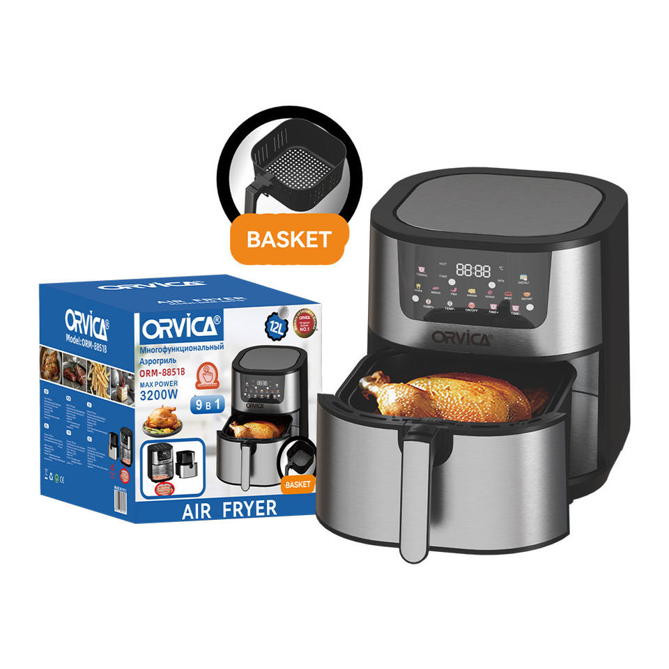 Freidora de Aire Inteligente de Acero Inoxidable de Gran Capacidad con Pantalla Táctil de 12L, Horno Freidora de Aire Digital Multifuncional