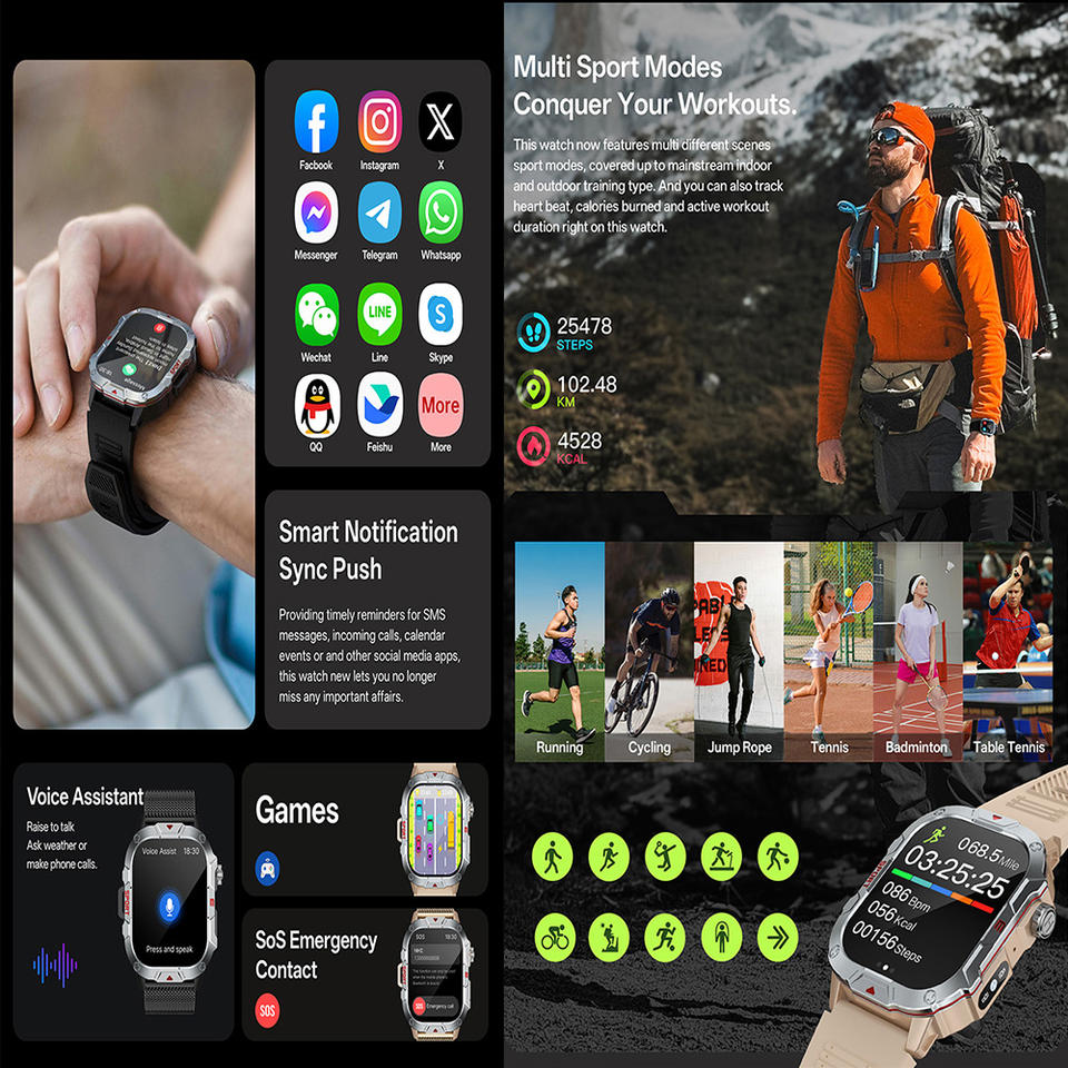 Calificación resistente al agua IP65: La clasificación IP65 asegura que el reloj inteligente está protegido contra el polvo y salpicaduras de agua, lo que lo hace adecuado para actividades al aire libre y uso diario.