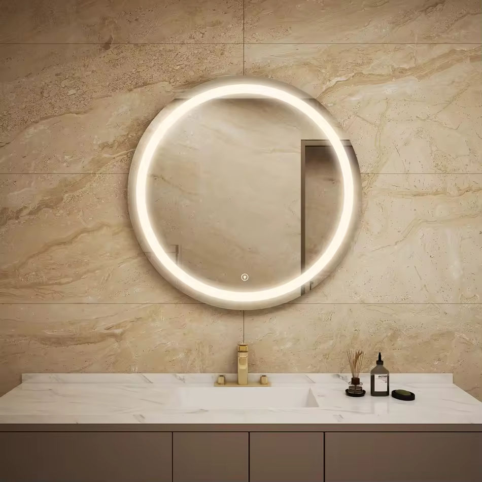 Espejo sin marco con interruptor táctil con líneas de iluminación esmeriladas gemelas, elegante, duradero, versátil, último modelo
