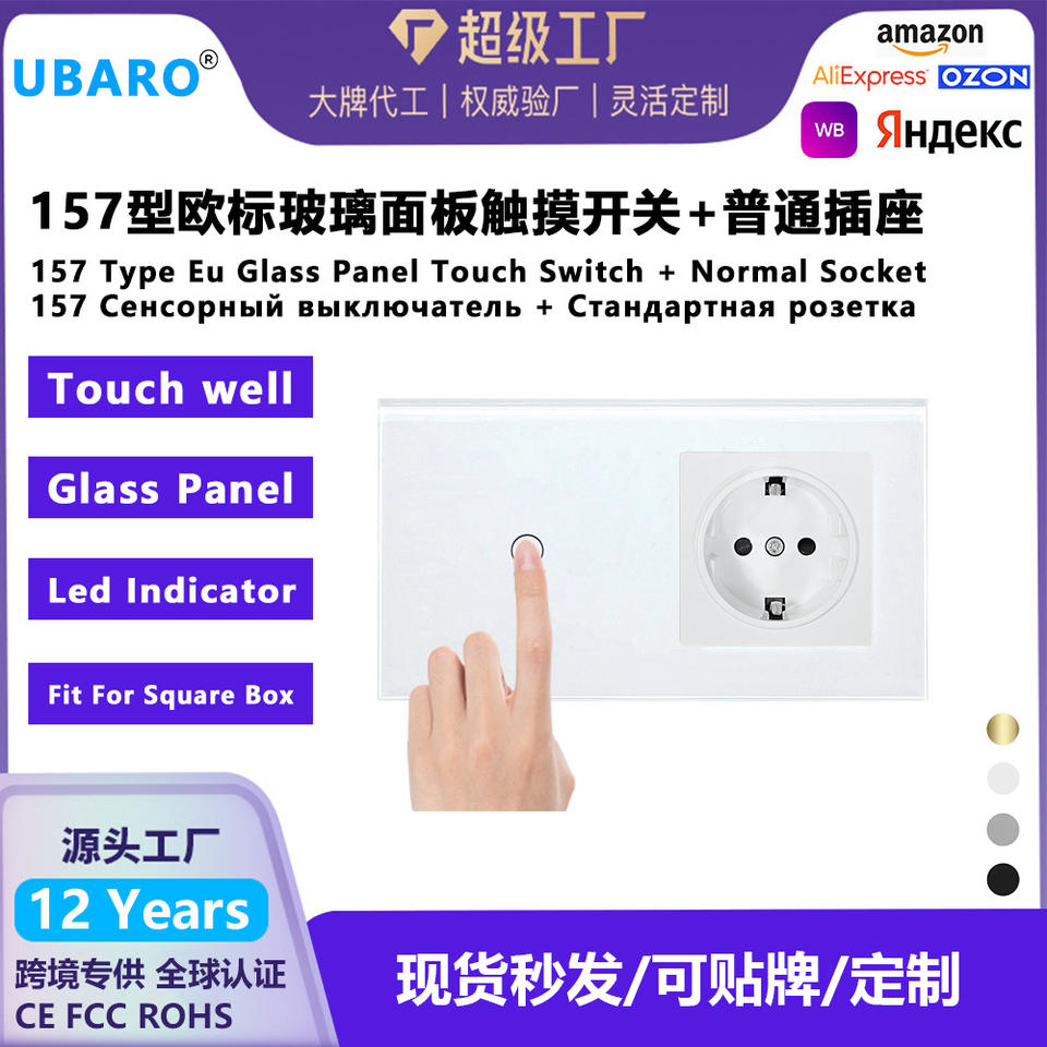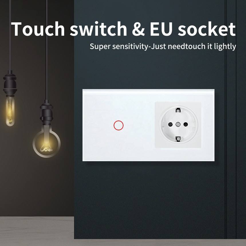 157 Interruptor táctil blanco de un solo toque con enchufe europeo y USB