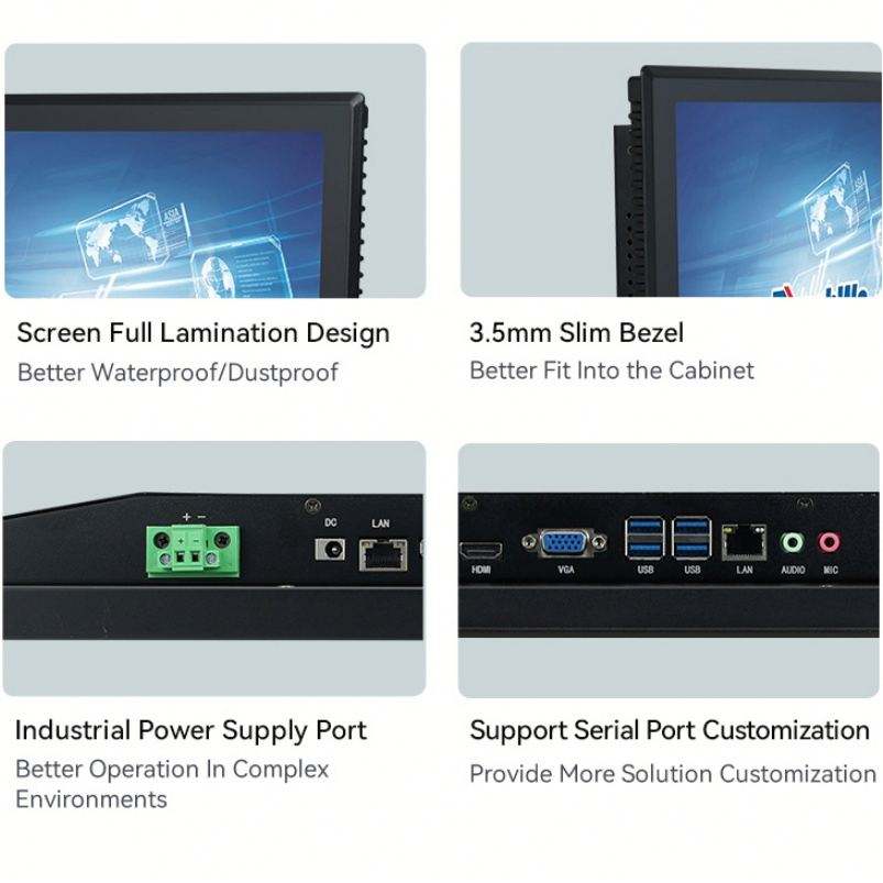 TouchWo Industrial Panel PC Monitor 10,1 ''-21,5'' Ip65 Grado Montado en la pared Pantalla táctil de metal sin ventilador
