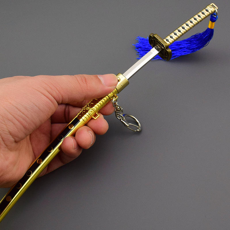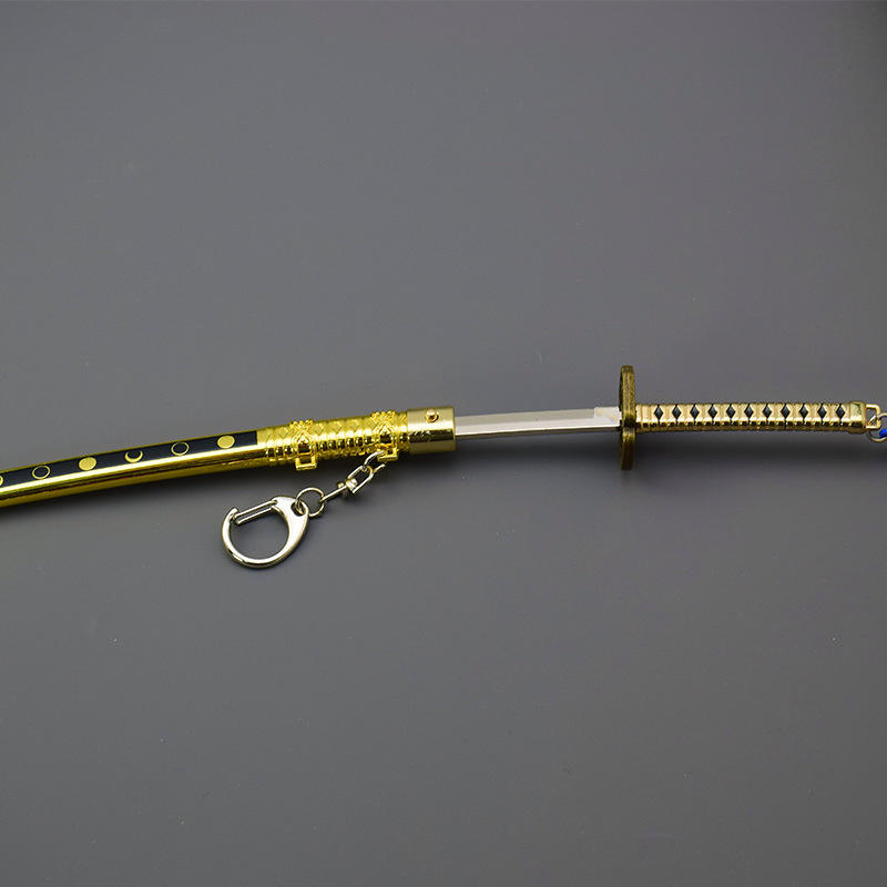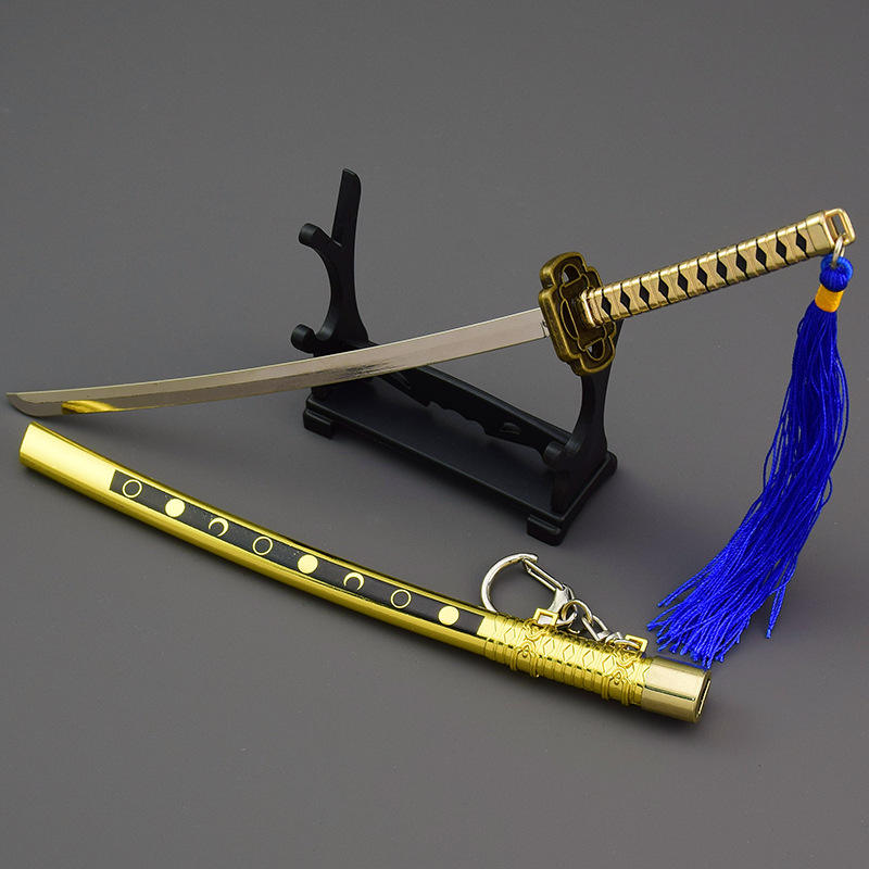 Touken Ranbu Mikazuki Munechika Katana, versión desenvainada con resorte, decoración de Llavero artesanal de Metal completo