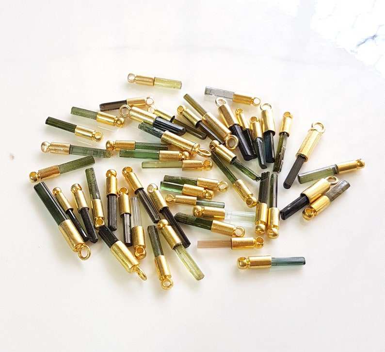 Turmalina Sticks Conector de piedras preciosas Colgante de un solo bucle Colgante de conector natural de plata 925 Colgante de lápiz chapado en oro de 14 quilates