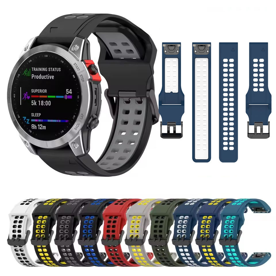 Correa de Reloj Deportiva de Silicona de Dos Tonos y Doble Color de 20 mm, 22 mm y 26 mm con Sistema QuickFit para Garmin Fenix 8, 7S, 7X, 7 Solar, 6S, 6, 6X, 5