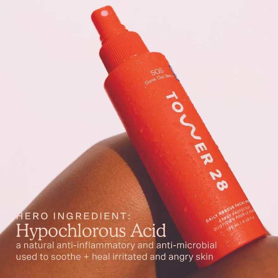 Spray Facial Hidratante SOS Daily Rescue de Tower 28, Ácido Hipocloroso, Calmante para el Enrojecimiento, Reparador de la Barrera Cutánea
