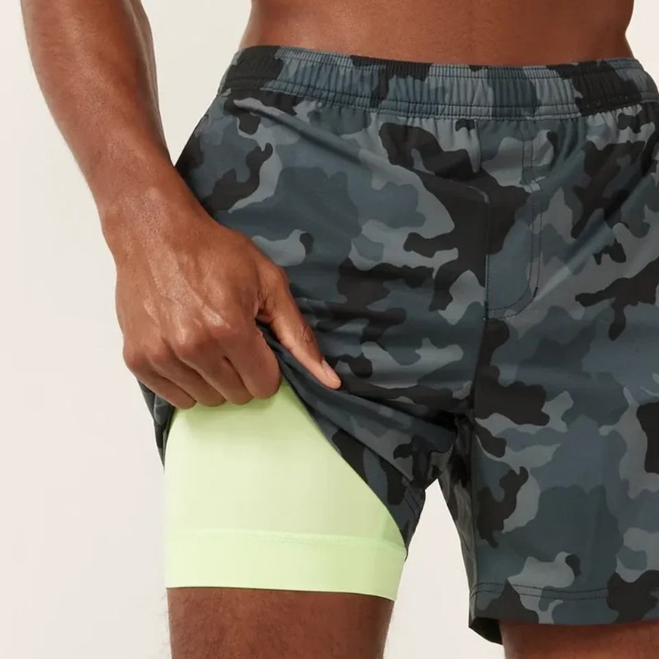 Pantalones Cortos Deportivos de Camuflaje para Hombre, con Bolsillos Laterales Divididos, de 7 Pulgadas, 2 en 1, para Correr