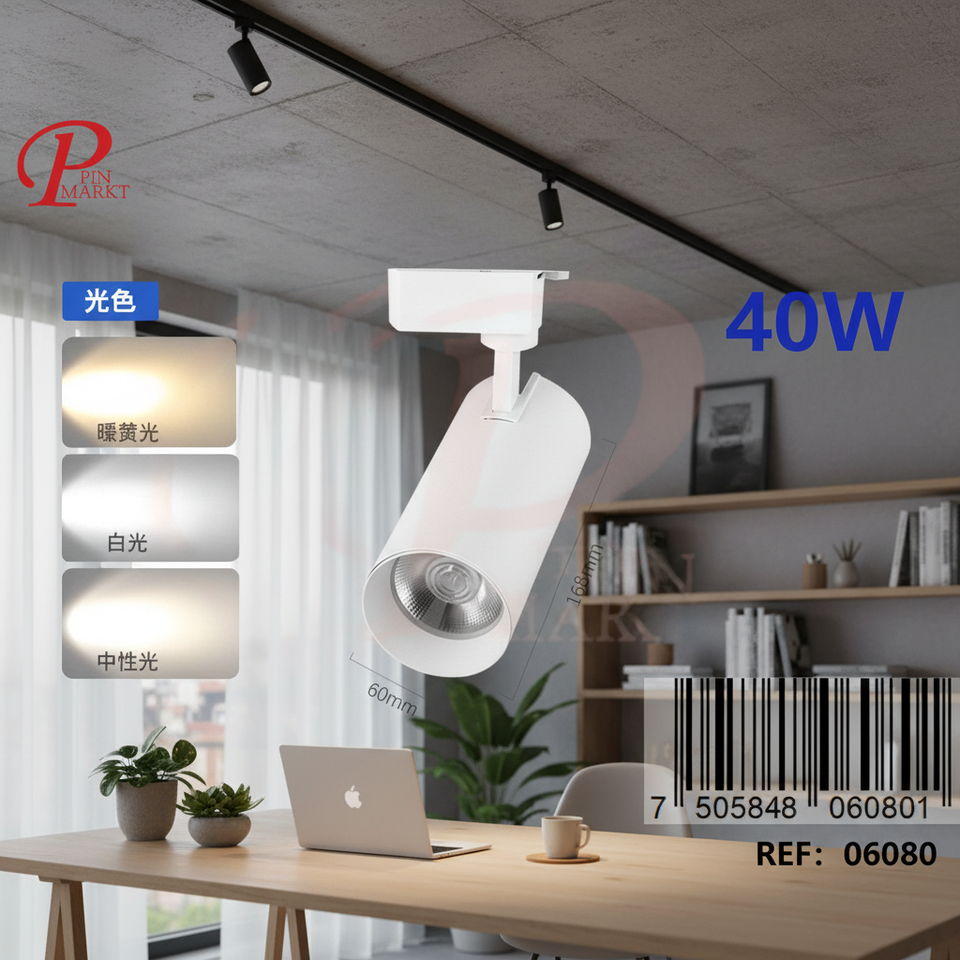 Track Light 3 Color 40W LED Home Office Durable Ahorro de energía Brillante Moderno 06080