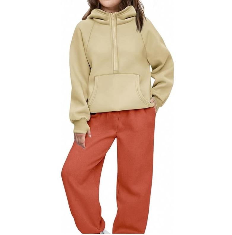 Chándal de lana de invierno para niños, conjunto de jersey con capucha, pantalón, conjunto de chándal para correr, ropa de invierno para niños, chándales de 2 piezas para niñas
