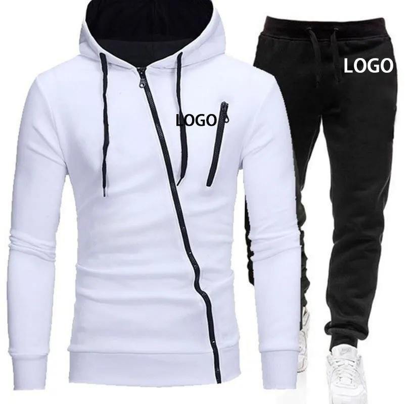 Conjunto de Dos Piezas de Sudadera con Capucha y Cremallera de Forro Polar Técnico Sólido para Hombre, Ropa Deportiva, Impresión Digital, Poliéster/Algodón