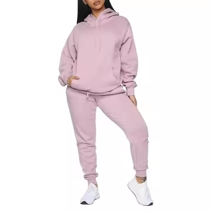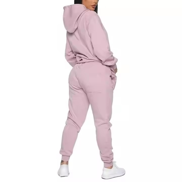 Ropa de calle deportiva recortada lavada con bordado, logotipo personalizado, cremallera, dos pantalones de chándal de 2 piezas y conjunto de Sudadera con capucha, chándales para mujer