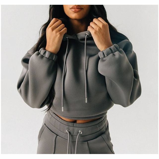 Chándal Nuevo y elegante chándal con logotipo personalizado Crop Tops Sudaderas con capucha y chándal para correr Conjunto de 2 piezas Chándales de mujer para mujer