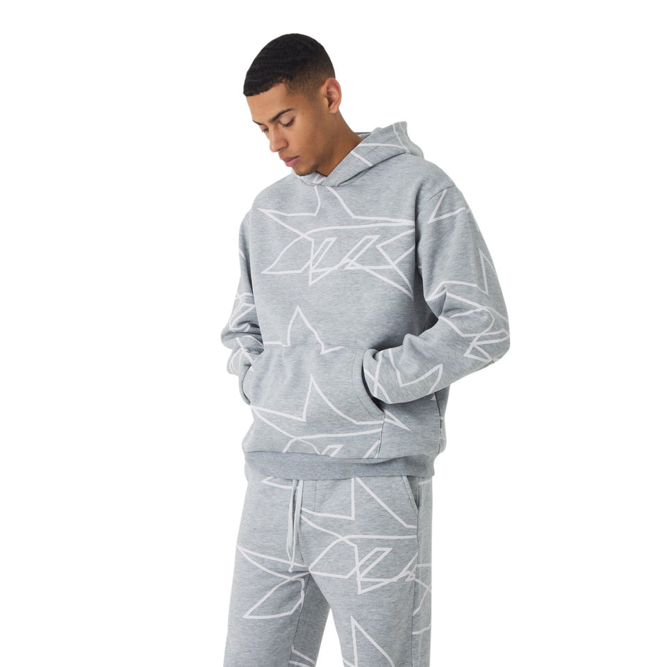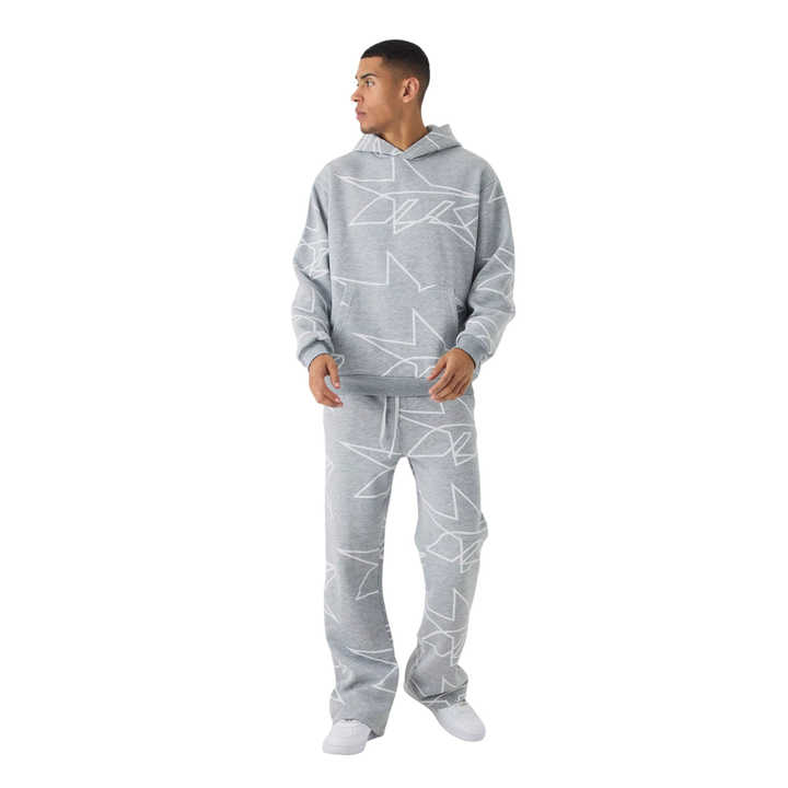 Conjunto Deportivo para Hombre, Sudadera con Capucha y Pantalones con Estampado Puff, Conjunto Deportivo con Pantalones Anchos
