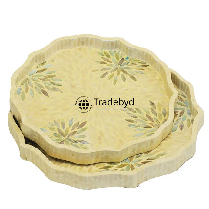 Bandeja decorativa con incrustaciones de fregona Tradebyd, bandeja de servicio hecha a mano para café, desayuno y mesa de comedor