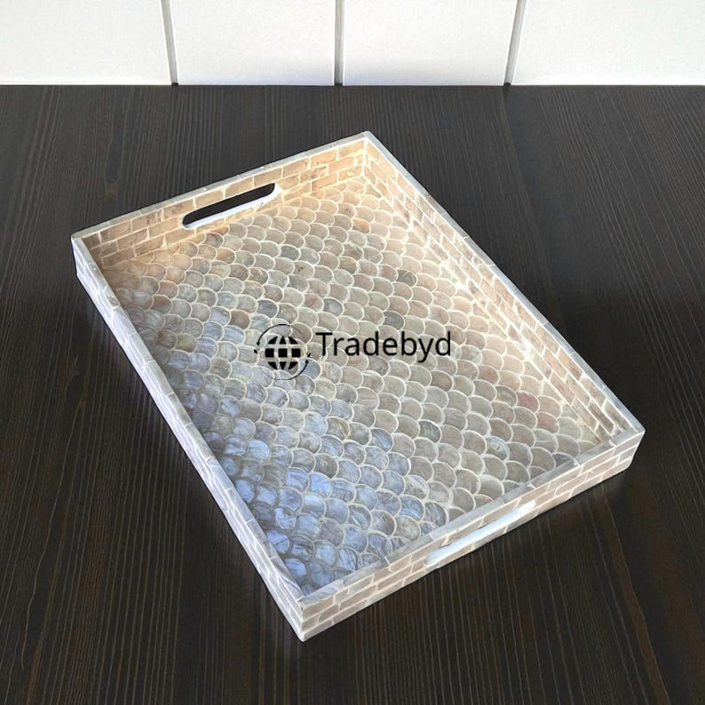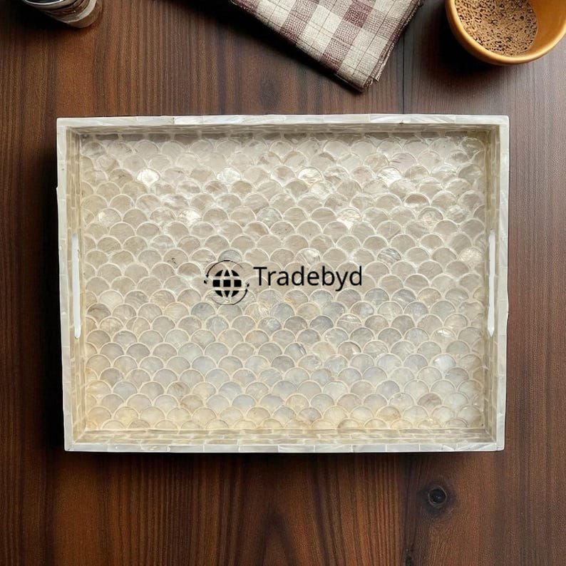 Tradebyd Modern MOP Inlay Tray Bandeja decorativa hecha a mano de calidad premium para estilo y exhibición de mesa