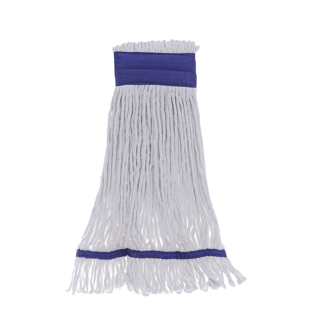 Mopa tradicional Kentucky de algodón de 8 capas, extremo de bucle, rectángulo plano, Centro ancho, Banda Azul, Clip de mopa de limpieza eficiente