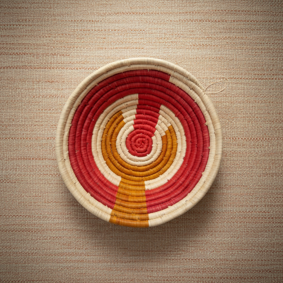 Cesta de Almacenamiento Tejida a Mano Africana Tradicional, Cesta de Rafia Enrollada Colorida para Colgar en la Pared y Organizar