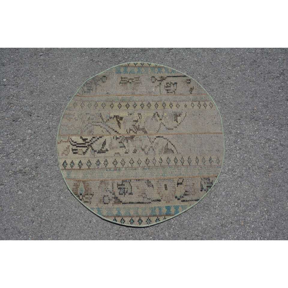 Alfombra turca Vintage Beige tradicional 2,7X2,7 pies Diseño de retazos Material de viscosa de lana Respaldo de látex para vivir para adolescentes