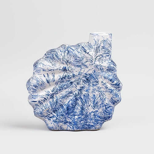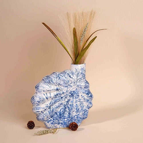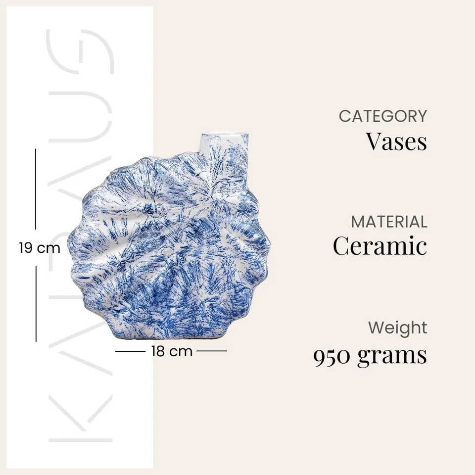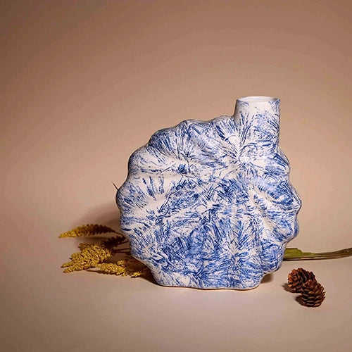 Jarrón de Flores Azul Chino Tradicional, Cerámica, Decoración para Mesa, Estilo Simple, Hecho a Mano, Moderno, Versátil, Bajo