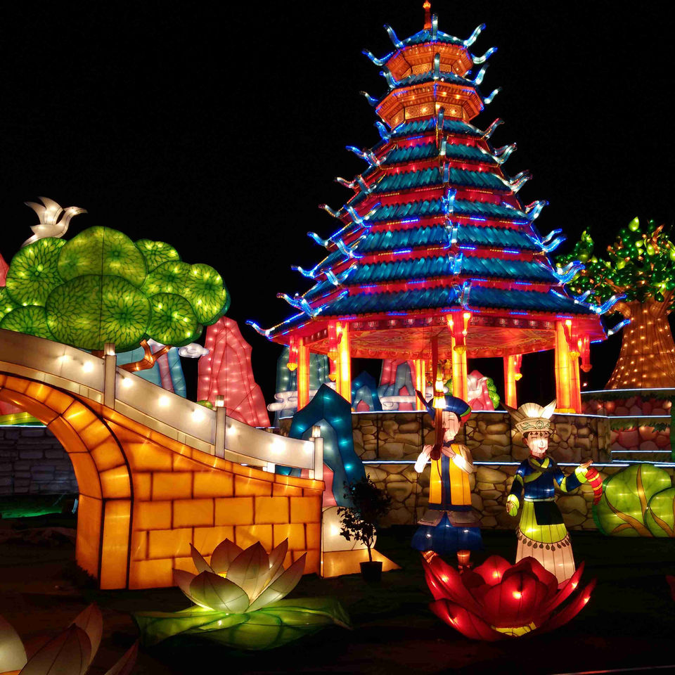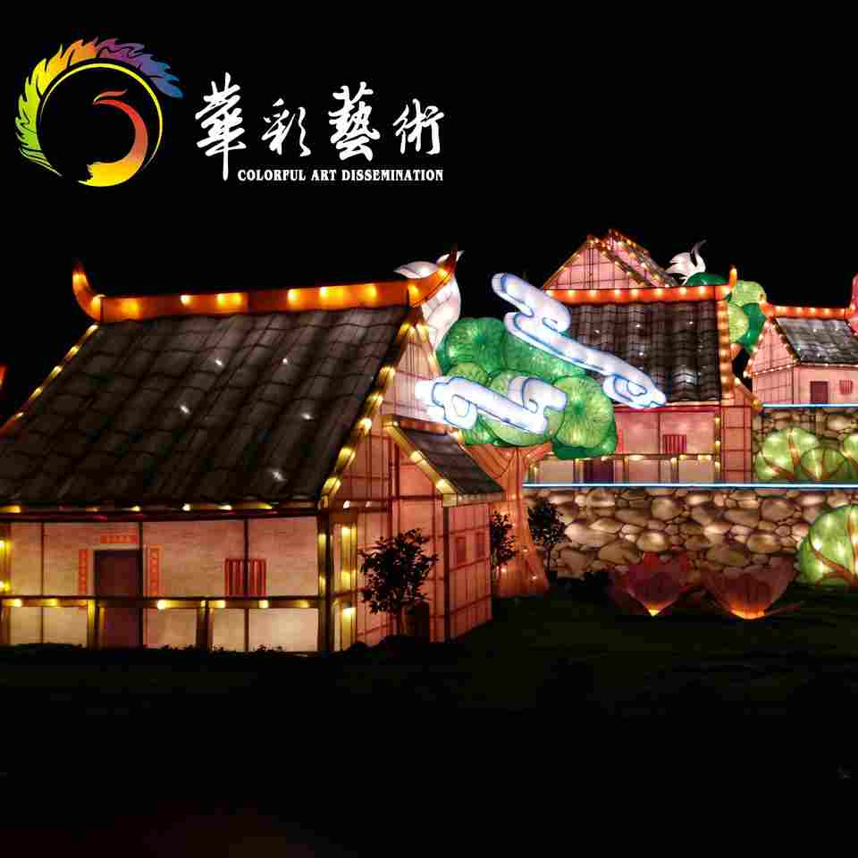 Linterna LED china tradicional para patios de recreo Características de narración de cuentos de arquitectura enorme para el Año Nuevo chino Pascua Navidad