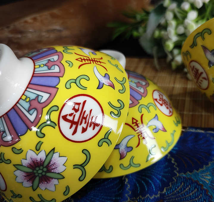 Juego de Tazas de Té de Porcelana China Tradicional para la Longevidad, Apto para Lavavajillas y Microondas, Origen Taiwán