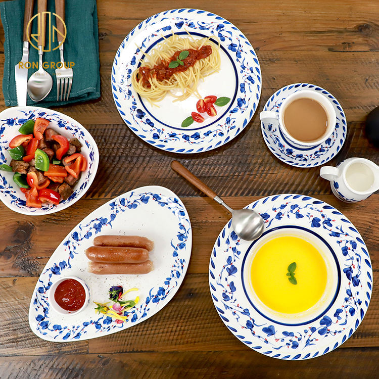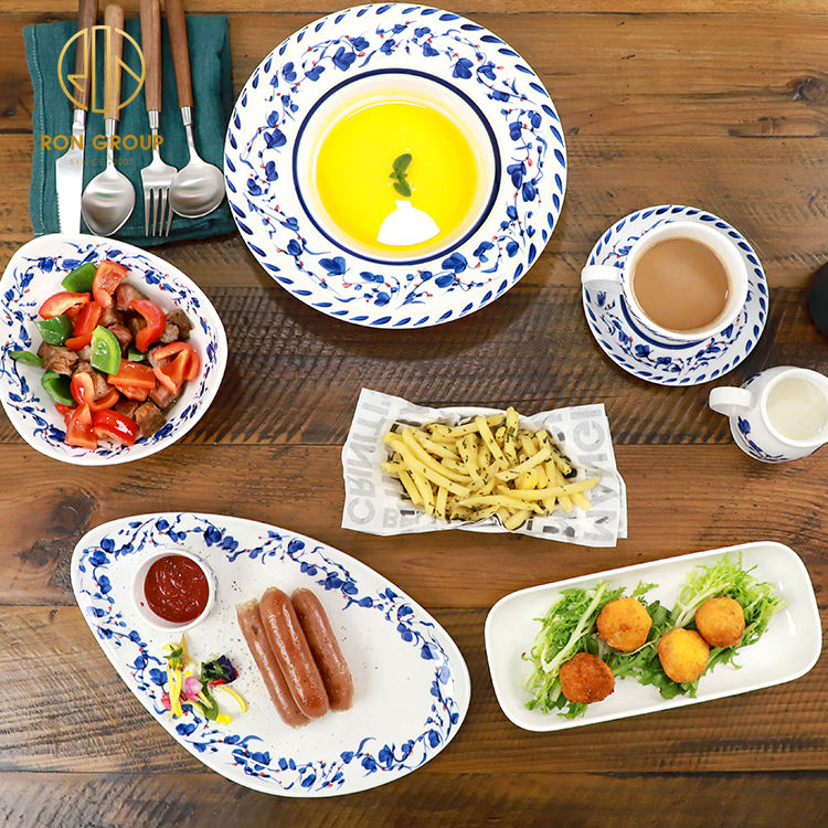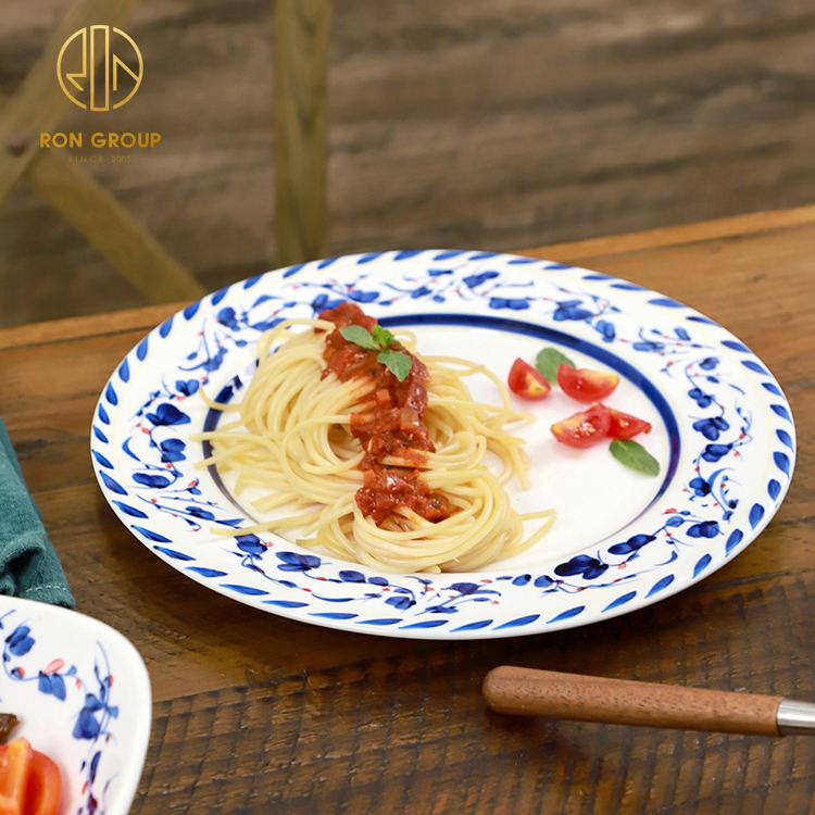 Cafetería tradicional, tienda de café, comida rápida, cerámica, 12,5 pulgadas, Pasta, Pizza, plato de comedor redondo, cubiertos de cena de porcelana para restaurante