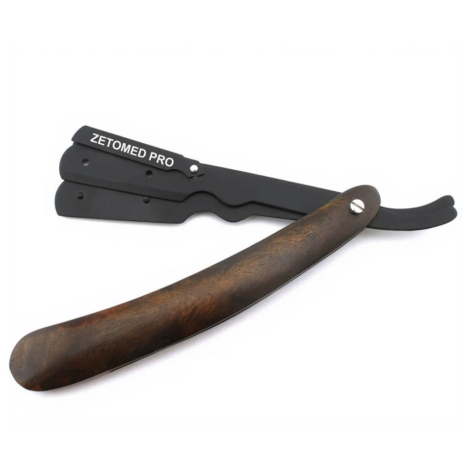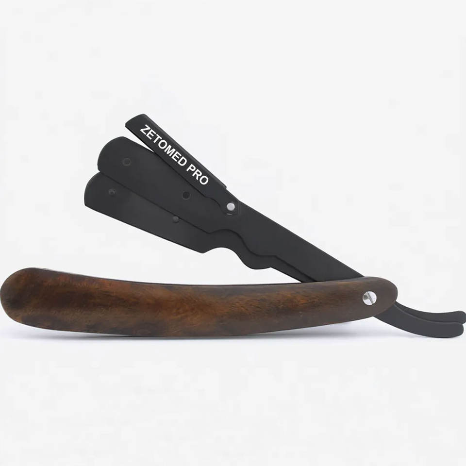 Navaja de afeitar tradicional con mango de madera oscura de primera calidad
