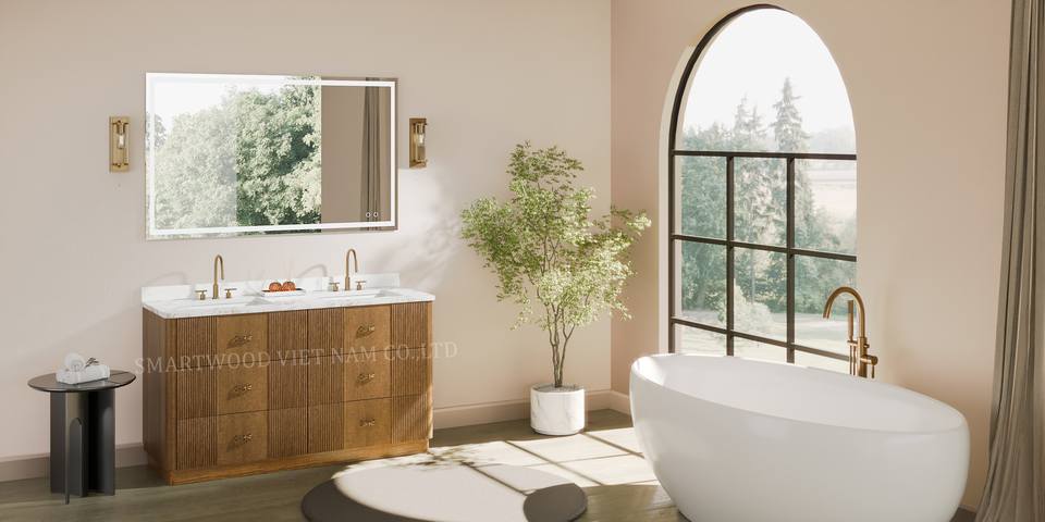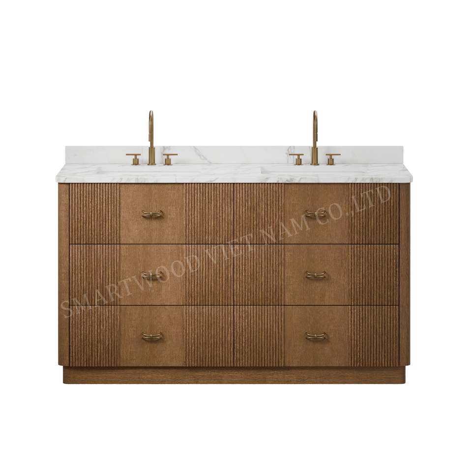Tocador de baño de diseño tradicional, muebles de madera con tapa de cuarzo de Vietnam