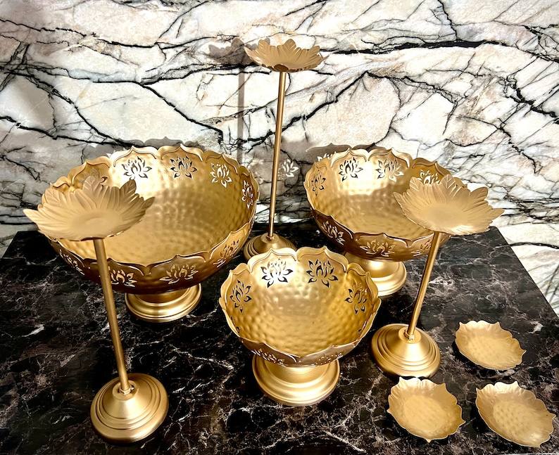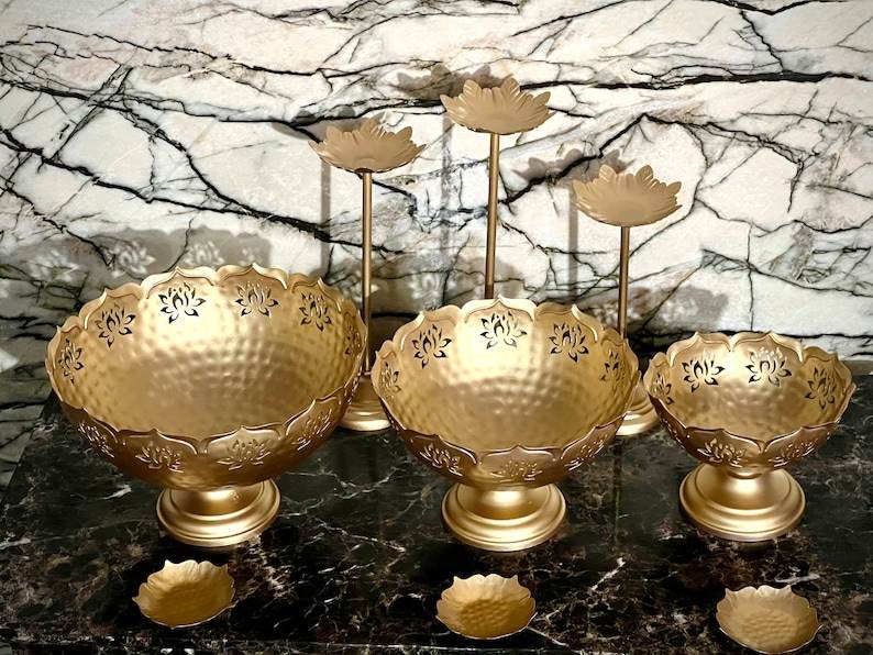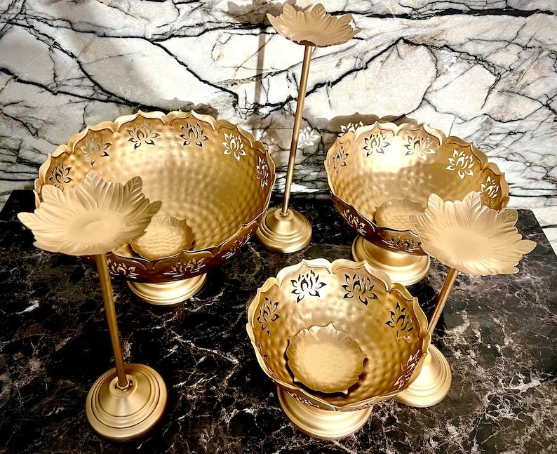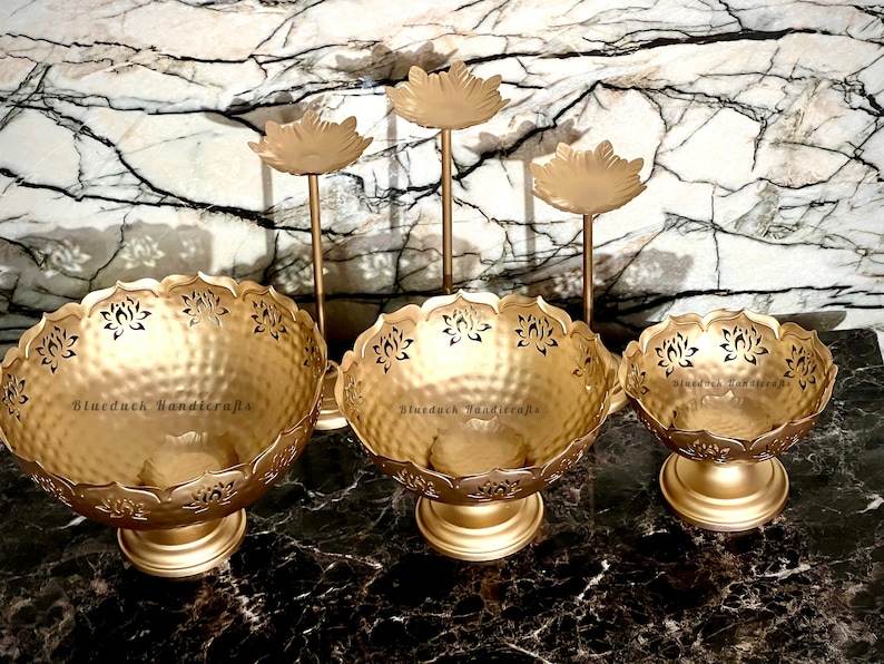 Diseño tradicional Color dorado Latón Taj Bowl Urli con soporte para velas Diya flotante y tazón Artículo decorativo más vendido al por mayor