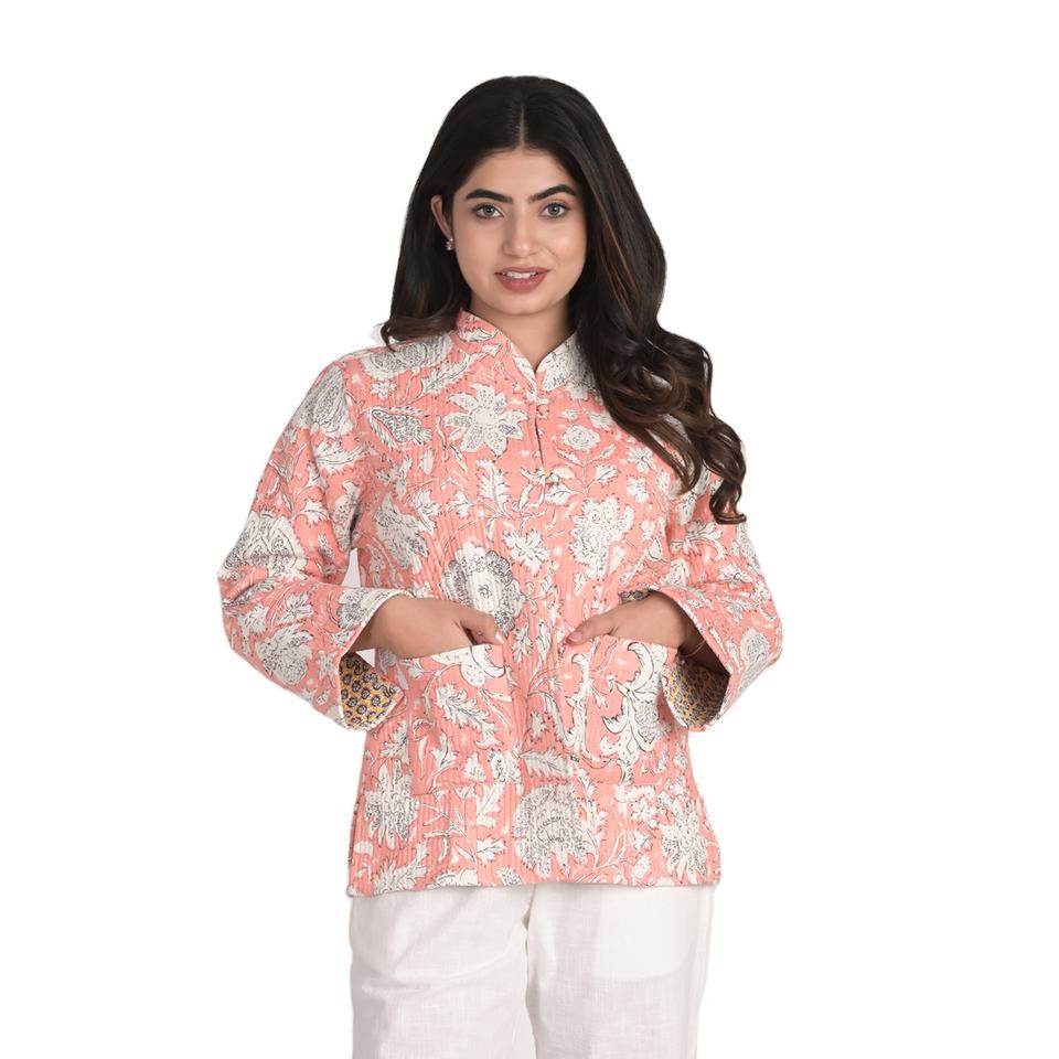 Chaquetas de invierno de algodón indio:Chaquetas reversibles hechas a mano del kantha del algodón
