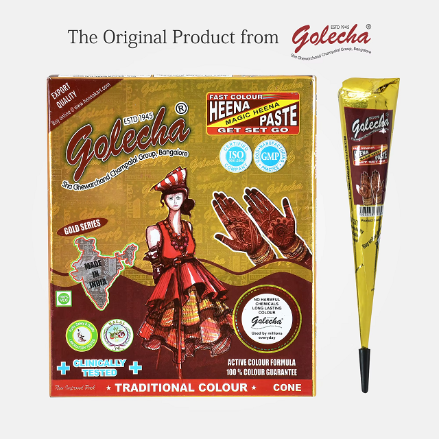 Cono de Henna Tradicional Dorado y Marrón, Listo para Usar, para Diseños de Bodas y Festividades