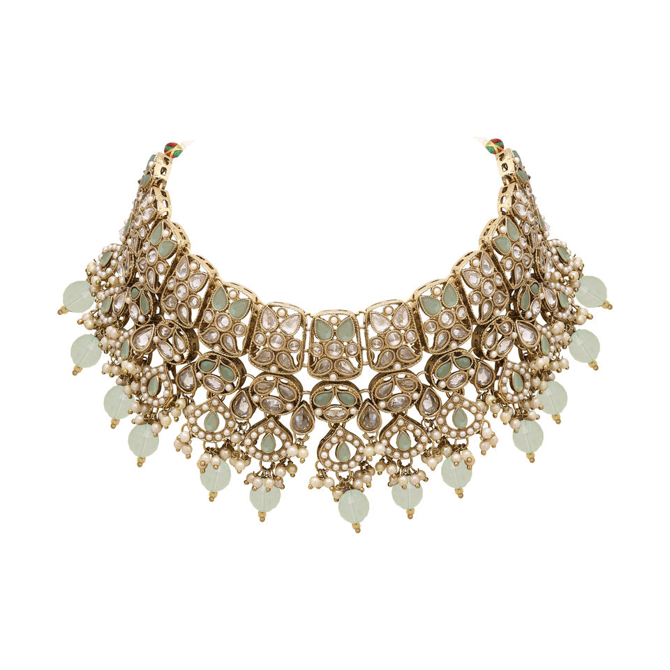 Collar de oro tradicional de la colección de bodas, joyería de AD inversa, cadenas chapadas en Mehandi, regalo para ella