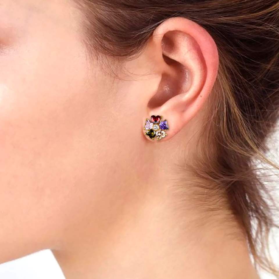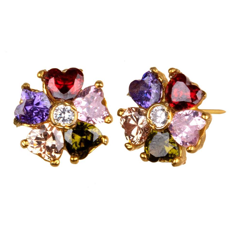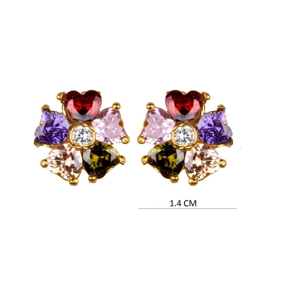 Tradicional chapado en oro hipoalergénico forma Floral Zirconia cúbica Multi perla CZ Stud pendiente perforado joyería para regalo