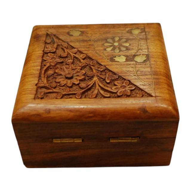 Nombre del producto:Caja de madera tallada a mano tradicional con acabado antiguo