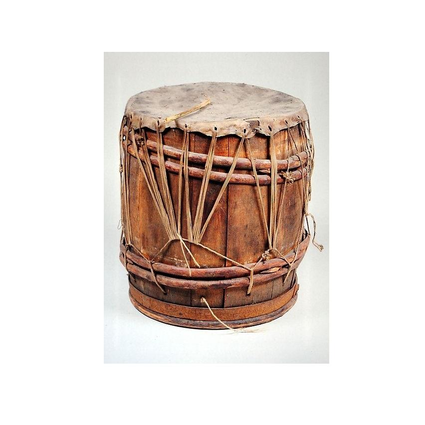 Instrumento musical de tambor tradicional hecho a mano de madera perfecto para festivales folclóricos reuniones culturales y música escénica