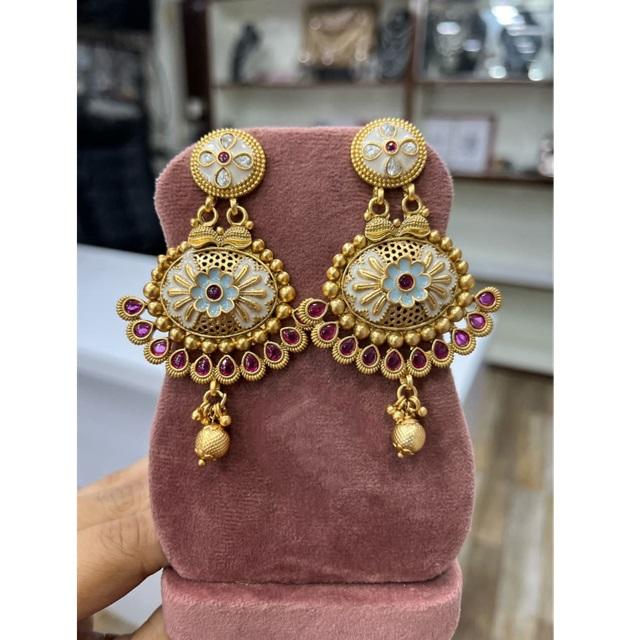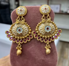 Pendientes tradicionales de alta calidad Royal Rajwadi Glow Jhumka, joyería de latón chapada en oro para mujer, boda y regalo