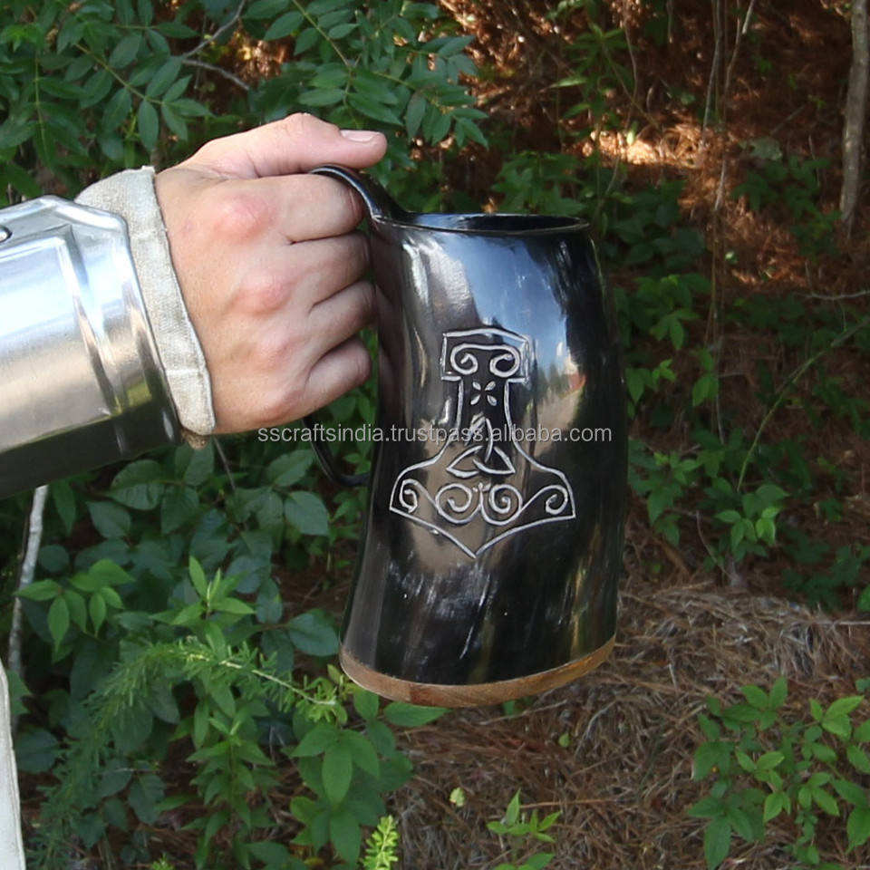 Jarra de cuerno tradicional, taza vikinga ecológica hecha a mano para cerveza Ale Mead, cerveza fría, bebida rústica, cantidad a granel