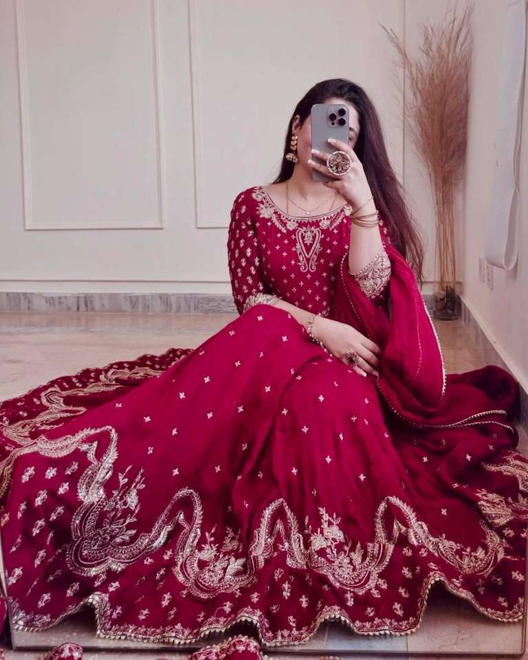 Product Name:Faux Georgette Sequence Embroidery Gown & Bottom With Dupatta