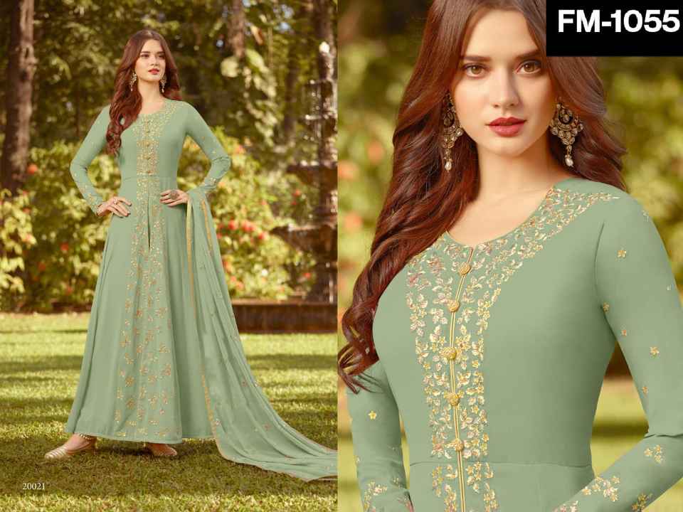 Georgette de estilo indio tradicional con trabajo de diamantes Vestido Anarkali con Dupatta Fabricante indio de hermosos vestidos estampados