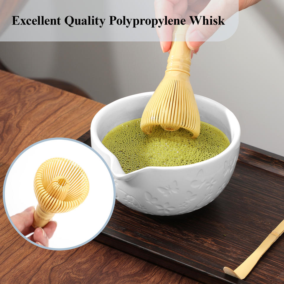Juego de Té Matcha Japonés Tradicional de 4 Piezas, Tazón de Cerámica y Batidor de PP con Diseño Floral para la Ceremonia del Té en Casa
