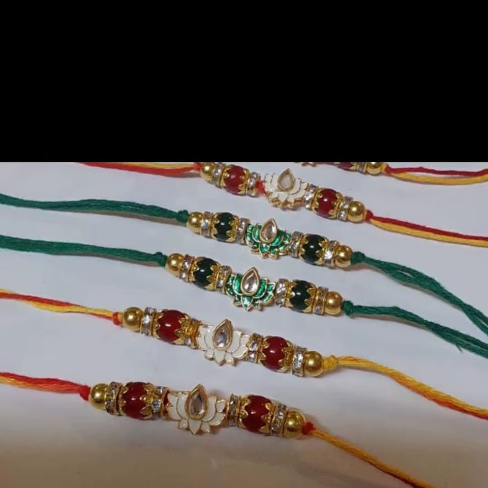Conjunto de Rakhi Tradicional de Loto Meenakari, Rakhis de Diseño Hechos a Mano para Hermano con Trabajo Kundan y Cuentas Vibrantes