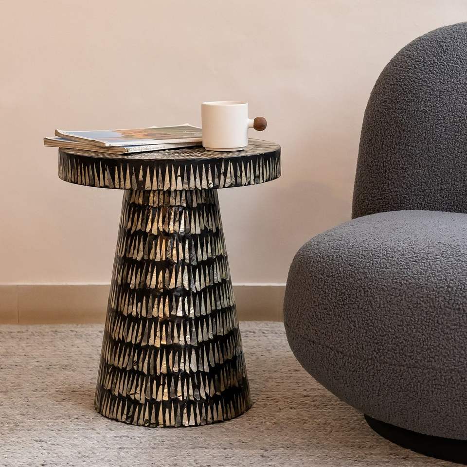 Mesa Auxiliar de Lujo Tradicional con Incrustaciones de Hueso, Obra de Arte Intrincada, Estilo Antiguo, Color Personalizado para una Decoración Elegante del Hogar