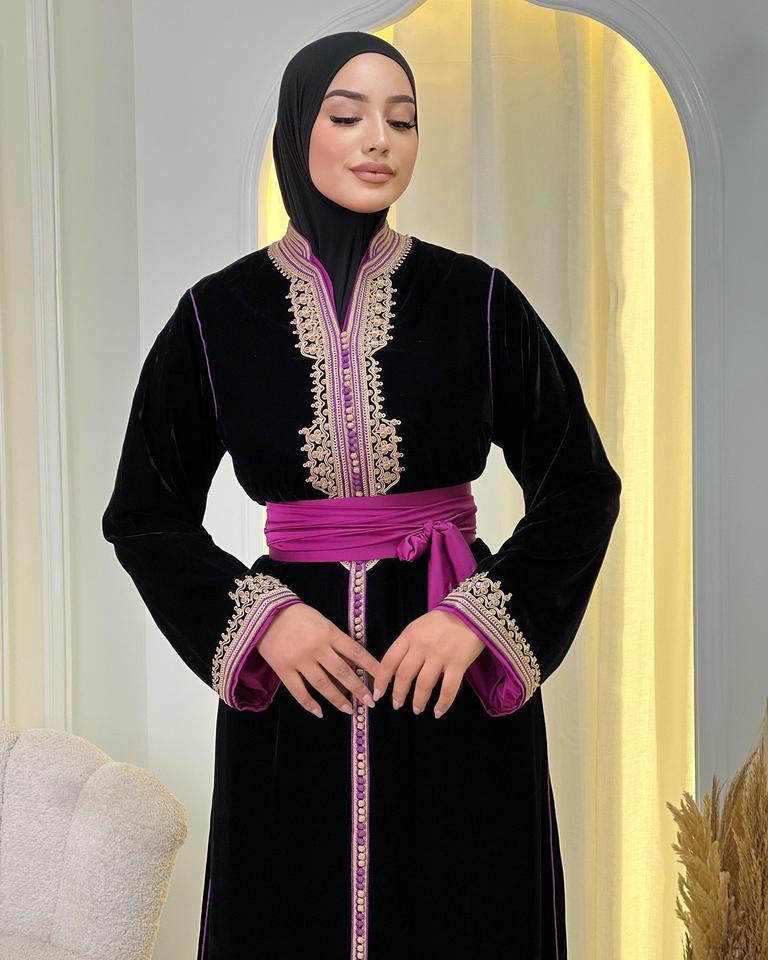 Caftán Nupcial Tradicional Marroquí de Lujo en Satén con Adornos Únicos, Diseño Festivo, Decoración Ecológica, Maxi