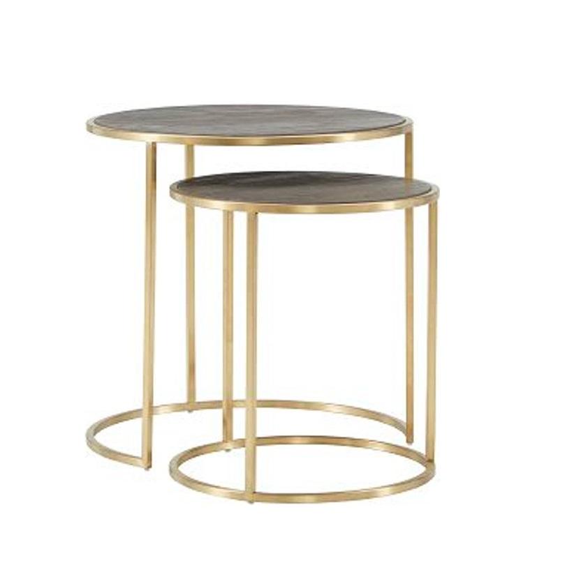 Mesa de centro de metal de estilo marroquí tradicional con patrones en relieve y tapa de mármol Acabado dorado antiguo para decoración exótica